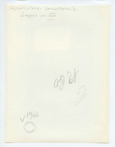 - ISCRIZIONI supporto primario: verso: in alto al centro - Capodistria - Concattedrale/ Leggio sec. XVIII - a matita -