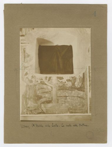 - NOTIZIE STORICO CRITICHE La fotografia fa parte dell'insieme archivistico denominato "Venezia Giulia" (tre cartelle: V. VIII, V. IX, V. X), nello specifico, è conservata all'interno della cartella V. X. La fotografia fa parte di un nucleo di materiali che Antonio Morassi utilizzò per la pubblicazione dell'articolo "Gli affreschi nella Chiesa di Vermo" in Emporium, 1926. Dal confronto con un esemplare della stessa fotografia contenuta nella cartella "Venezia Giulia IX" (CRV-F_0031219), è possibile risalire al periodo della ripresa, compreso tra il 1902 e il 1926 (anno della pubblicazione in Emporium). L'esemplare contenuto nella cartella IX, infatti, fa parte del nucleo di fotografie appartenute ad Anton Gnirs (1873-1933), che, dal 1902, ricopriva il ruolo di Conservatore della Commissione per l'Arte e la Conservazione a Vienna e, nello specifico, per il territorio dell'attuale Istria.