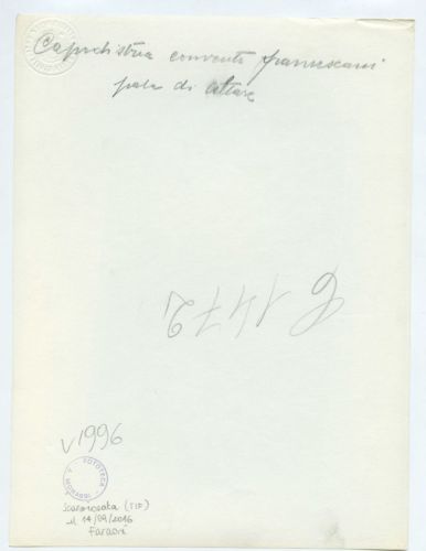 - ISCRIZIONI supporto primario: verso: in alto al centro - Capodistria convento francescani/ pala di altare - a matita -