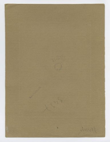 La fotografia, montata su cartoncino di colore marrone, riporta diverse indicazioni editoriali a matita in vista della pubblicazione sulla rivista Emporium.