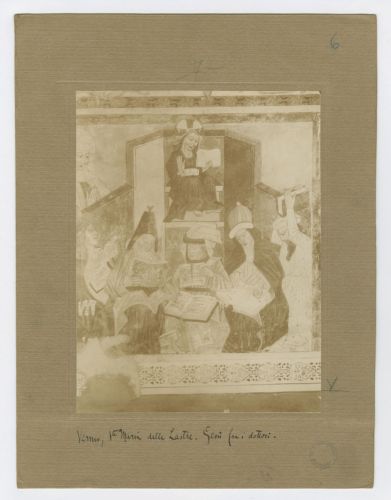 - NOTIZIE STORICO CRITICHE La fotografia fa parte dell'insieme archivistico denominato "Venezia Giulia" (tre cartelle: V. VIII, V. IX, V. X), nello specifico, è conservata all'interno della cartella V. X. La fotografia fa parte di un nucleo di materiali che Antonio Morassi utilizzò per la pubblicazione dell'articolo "Gli affreschi nella Chiesa di Vermo" in Emporium, 1926. Dal confronto con un esemplare della stessa fotografia contenuta nella cartella "Venezia Giulia IX" (CRV-F_0031207), è possibile risalire al periodo della ripresa, compreso tra il 1902 e il 1926 (anno della pubblicazione in Emporium). L'esemplare contenuto nella cartella IX, infatti, fa parte del nucleo di fotografie appartenute ad Anton Gnirs (1873-1933), che, dal 1902, ricopriva il ruolo di Conservatore della Commissione per l'Arte e la Conservazione a Vienna e, nello specifico, per il territorio dell'attuale Istria.