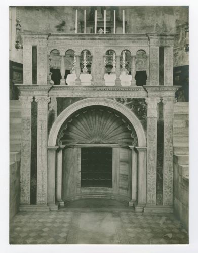- NOTIZIE STORICO CRITICHE La fotografia fa parte dell'insieme archivistico denominato "Venezia Giulia" (tre cartelle: V. VIII, V. IX, V. X), nello specifico, è conservata all'interno della cartella V. X. La fotografia fa parte di un nucleo di materiali che Antonio Morassi utilizzò per la pubblicazione del contributo "La pittura e la scultura nella Basilica" in La basilica d'Aquileia, Zanichelli 1933.