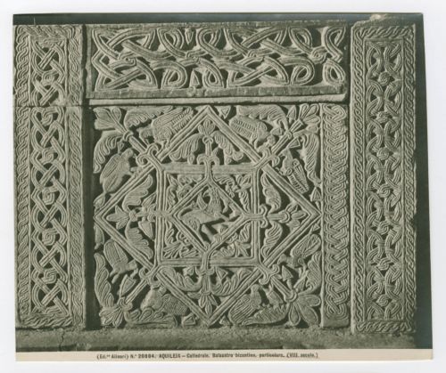 - ISCRIZIONI supporto primario: recto: in basso - (Ed. ne Alinari) N. 20884. AQUILEIA - Cattedrale. Balaustro bizantino, particolare. (VIII secolo.) - a matita -