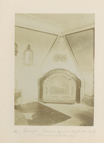 - ISCRIZIONI supporto secondario: recto: in basso a sinistra - 6 Crauglio. Kamin aus des 2. halfte des 17. Jh./ Bild aus des mitte des 18. Jh - a matita - Tedesco