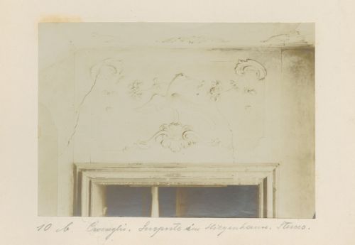 - ISCRIZIONI supporto secondario: recto: in basso a destra - 10 b Crauglio. Surporte im stiegenhause. Stucco. - a matita - Tedesco