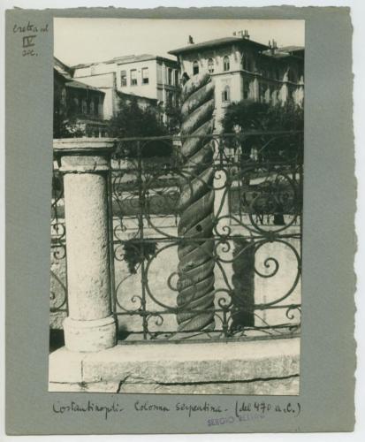 - ISCRIZIONI supporto secondario: recto: in basso al centro - Costantinopoli. Colonna serpentina (del 470 a.C.) - a matita -