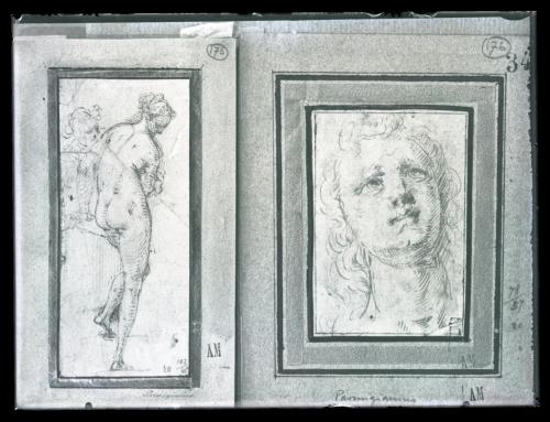Parmigianino - Due disegni: Testa e Nuda