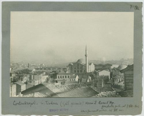 - ISCRIZIONI supporto secondario: recto: in basso a sinistra - Costantinopoli. S.Teodosia (Gül giamia) verso il Corno dOro./ Fondata prob. Nel 780-802/ con rifacimenti probab. del XIV° sec. - a matita -
