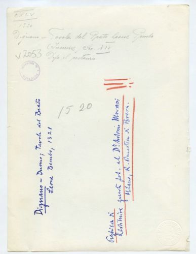 - ISCRIZIONI sul supporto primario: verso: in alto a destra - Dignano - Tavola del Beato Leone Bembo/ Insieme sec. XIV/ Dopo il restauro - a matita -