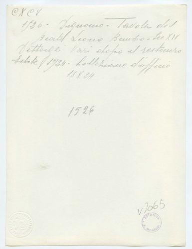 - ISCRIZIONI sul supporto primario: verso: in alto al centro - Dignano - Tavola del/ Beato Leone Bembo. Sec. XIV/ Dettagli vari dopo il restauro/ Estate 1924. Collezione d'ufficio/ 18x24 - a matita -