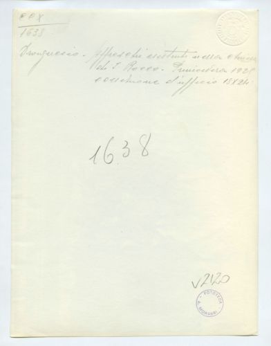 - ISCRIZIONI sul supporto primario: verso: a destra - Draguccio. Affreschi esistenti nella/ chiesa di S. Rocco/ Primavera 1925/ collezione d'ufficio 18x24 - a matita -