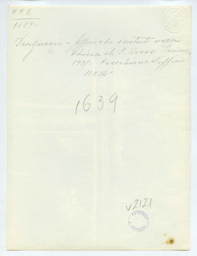 - ISCRIZIONI sul supporto primario: verso: a destra - Draguccio. Affreschi esistenti nella/ chiesa di S. Rocco Primavera/ 1925. Collezione d'ufficio 18x24 - a matita -
