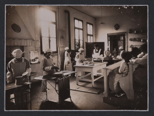 Un'esercitazione di cucina presso la Regia Scuola Industriale femminile di secondo grado "Pietro Scalcerle" di Padova