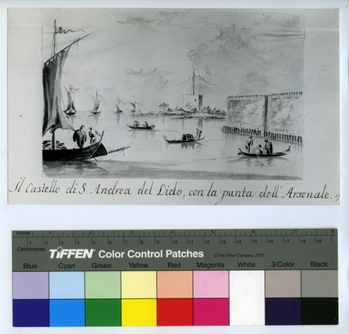 Guardi, Giacomo. Il castello di S. Andrea del Lido, col la punta dell'Arsenale - Sec.20