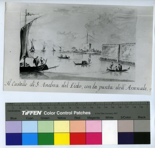 Guardi, Giacomo. Il castello di S. Andrea del Lido, col la punta dell'Arsenale - Sec.20.