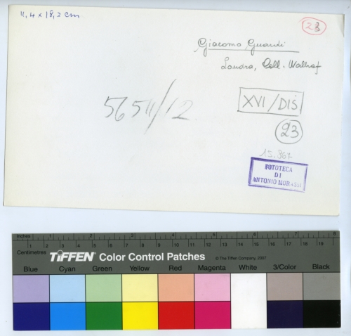 - ISCRIZIONI sul supporto primario: verso - 11,4x18,2 cm - Giacomo Guardi/ Coll. Wallraf, Londra - 56511/12 - 23 - XVI/DIS/ 23 - Fototeca di Antonio Morassi - 15.867 - Morassi, Antonio e collaboratori. Collaboratori dell'Archivio Fototeca Antonio Morassi -