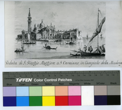 Guardi, Giacomo. Veduta di S. Giorgio Maggiore a S. Canciano in Campiello della Madona - Sec.20.