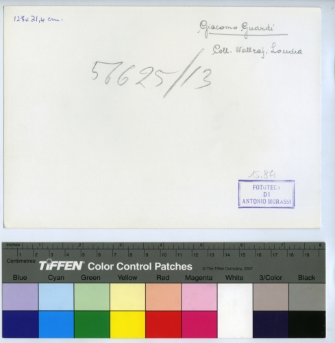 - ISCRIZIONI sul supporto primario: verso - 12 1/2x21,5 cm - Giacomo Guardi/ Coll. Wallraf, Londra - 56511/13 - Fototeca di Antonio Morassi - 15.871 - Morassi, Antonio e collaboratori. Collaboratori dell'Archivio Fototeca Antonio Morassi -