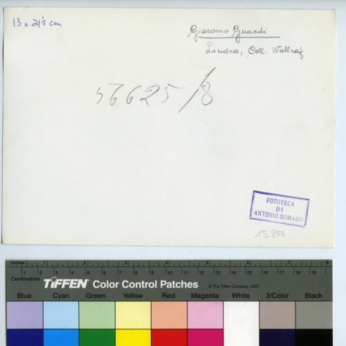 - ISCRIZIONI sul supporto primario: verso - 13 x21 1/2 cm - Giacomo Guardi/ Londra, Coll. Wallraf - 56625/8 - Fototeca di Antonio Morassi - 15.877 - Morassi, Antonio e collaboratori. Collaboratori dell'Archivio Fototeca Antonio Morassi -