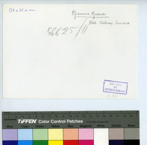 - ISCRIZIONI sul supporto primario: verso - 12 1/2x21,4 cm - Giacomo Guardi/ Londra, Coll. Wallraf - 56625/11 - Fototeca di Antonio Morassi - 15.881 - Morassi, Antonio e collaboratori. Collaboratori dell'Archivio Fototeca Antonio Morassi -