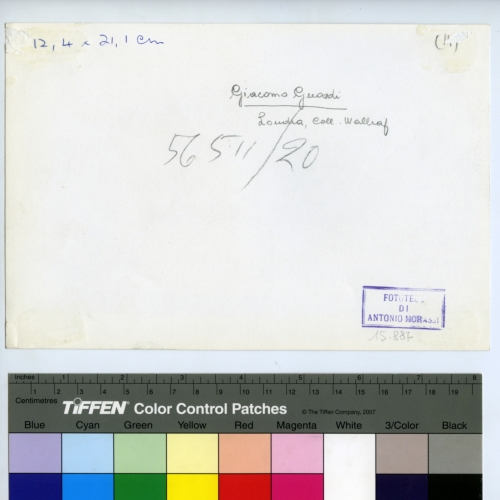 - ISCRIZIONI sul supporto primario: verso - 12 1/2x21 cm - Giacomo Guardi/ Londra, Coll. Wallraf - 56511/20 - Fototeca di Antonio Morassi - 15.887 - Morassi, Antonio e collaboratori. Collaboratori dell'Archivio Fototeca Antonio Morassi -