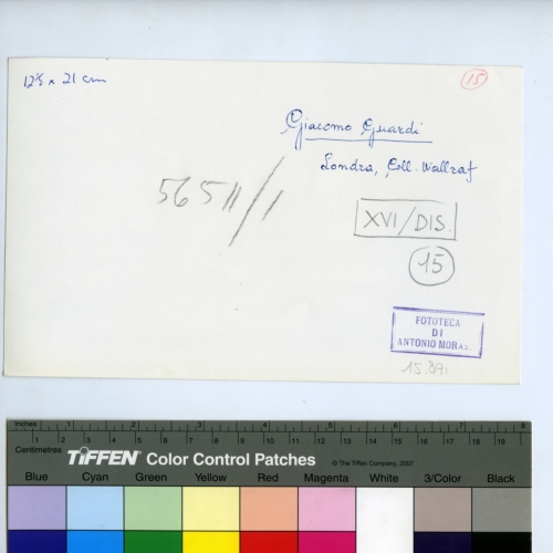 - ISCRIZIONI sul supporto primario: verso - 12 1/2x21 cm - Giacomo Guardi/ Londra, Coll. Wallraf - 56511/1 - XVI/DIS/ 15 - 15 - Fototeca di Antonio Morassi - 15.891 - Morassi, Antonio e collaboratori. Collaboratori dell'Archivio Fototeca Antonio Morassi -