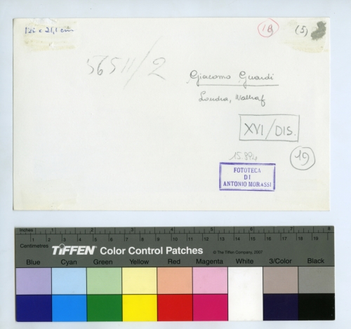 - ISCRIZIONI sul supporto primario: verso - 12x21,1 cm - Giacomo Guardi/ Londra, Coll. Wallraf - 56511/2 - XVI/DIS/ 19 - 19 - 5 - Fototeca di Antonio Morassi - 15.894 - Morassi, Antonio e collaboratori. Collaboratori dell'Archivio Fototeca Antonio Morassi -