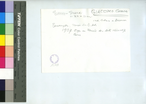 - ISCRIZIONI sul supporto primario: verso - Giacomo Guardi/ c. 22x33cm/ vedi lettera a Basancon/ Besacon, Musée des B. Arts/ 1957 Exp. an Musée des- Ats decoratif - Giacomo Guradi - Fototeca-A. Morassi - 15.939 - Morassi, Antonio e collaboratori. Collaboratori dell'Archivio Fototeca Antonio Morassi -