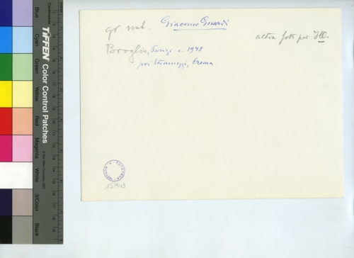 - ISCRIZIONI sul supporto primario: verso - Giacomo Guardi/ Parigi c. 1948/ poi Stramezzi, Crema - [...]/ Broglio - altra foto per Ill. - Fototeca-A. Morassi - 15.943 - Morassi, Antonio e collaboratori. Collaboratori dell'Archivio Fototeca Antonio Morassi -