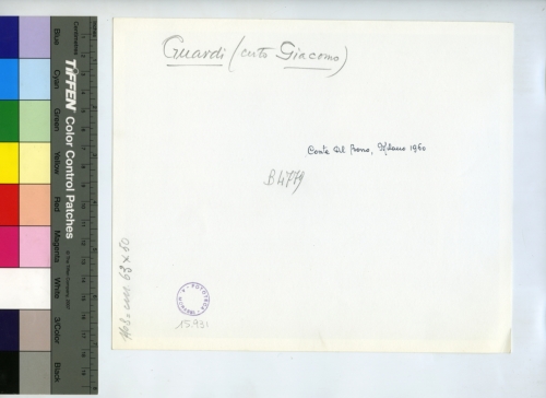 - ISCRIZIONI sul supporto primario: verso - Guardi (certo Giacomo) - Conte del Bono, Milano 1960 - B4770 - 1108 = cm 63x50 Fototeca-A. Morassi - 15.931 - Morassi, Antonio e collaboratori. Collaboratori dell'Archivio Fototeca Antonio Morassi -