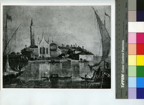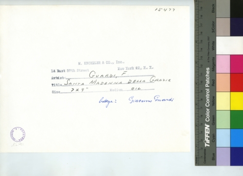 - ISCRIZIONI sul supporto primario: verso - 15477 - M. Knoedler & CO. Inc./ 14 East 57th Street New York 22, N.Y./ Artisti Guardi F./ Title Santa Madonna delle Grazie/ Size 7x9 '' s Medium Oil - Bottega: Giacomo Guardi - Fototeca-A. Morassi - 15.911 - Mittente. Morassi, Antonio. Collaboratori dell'Archivio Fototeca Antonio Morassi -