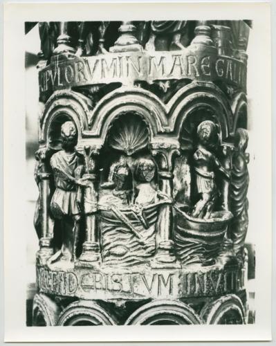 Particolari della colonna anteriore sinistra del ciborio di San Marco