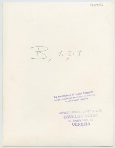 - ISCRIZIONI supporto primario: verso: al centro - B, 1.2.3 - a matita -