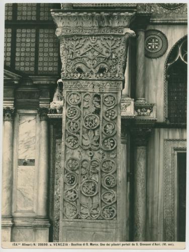 - ISCRIZIONI supporto primario: recto: in basso - (Ed.ne Alinari) N.° 20690. a. VENEZIA - Basilica di S. Marco. Uno dei pilastri portati da S. Giovanni d'Acri. (VI. sec). - a matita -