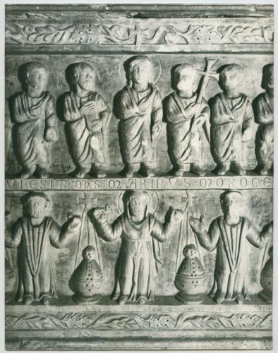 - ISCRIZIONI supporto primario: verso: in alto - fig. 50: Particolare del sarcofago Morosini - a matita -