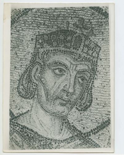 - ISCRIZIONI supporto primario: verso: in alto a destra - Costantinopoli. Sta. Sofia. Mosaico del vestibolo./ part. Testa di Giustiniano. - a matita -