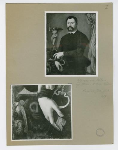 - NOTIZIE STORICO CRITICHE La fotografia riproduce il Ritratto di gentiluomo di Alessandro Allori, detto il Bronzino (1535-1607), ricomparso in un'asta a New York nel 2015 (Sotheby's, 29 gennaio 2015). Nello stesso cartoncino è montata una riproduzione fotografia del particolare di una mano dell'effigiato. La fotografia fa parte dell'insieme archivistico denominato "Collezione Züst" (due cartelle: C. XI e C. XII), nello specifico, è conservata all'interno della cartella C. XI. Trattasi del frutto dello studio condotto da Antonio Morassi sulla collezione di Giovanni Züst nel 1957.