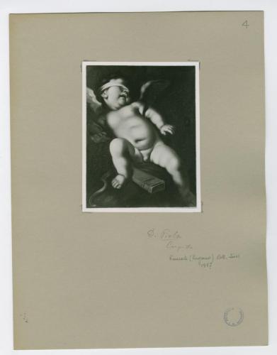 - NOTIZIE STORICO CRITICHE La fotografia, che riproduce il Cupido bendato attribuito da Antonio Morassi a Domenico Piola (1628-1703), fa parte dell'insieme archivistico denominato "Collezione Züst" (due cartelle: C. XI e C. XII), nello specifico, è conservata all'interno della cartella C. XI. Trattasi del frutto dello studio condotto da Antonio Morassi sulla collezione di Giovanni Züst nel 1957. La fotografia è montata su cartoncino.