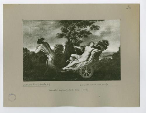 - NOTIZIE STORICO CRITICHE La fotografia, che riproduce Un satiro che trascina il carro di Amore e Venere attribuito da Antonio Morassi alla Scuola di Salvator Rosa e più recentemente ricondotto a Francesco Albani (Valle Parri 2019, p. 53), fa parte dell'insieme archivistico denominato "Collezione Züst" (due cartelle: C. XI e C. XII), nello specifico, è conservata all'interno della cartella C. XI. Trattasi del frutto dello studio condotto da Antonio Morassi sulla collezione di Giovanni Züst nel 1957. La fotografia è montata su cartoncino.