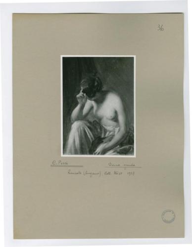 - NOTIZIE STORICO CRITICHE La fotografia, che riproduce un dipinto attribuito a Cesare Pezzi (1821-1854) raffigurante una giovane donna ignuda, fa parte dell'insieme archivistico denominato "Collezione Züst" (due cartelle: C. XI e C. XII), nello specifico, è conservata all'interno della cartella C. XI. Trattasi del frutto dello studio condotto da Antonio Morassi sulla collezione di Giovanni Züst nel 1957. La fotografia è montata su cartoncino.