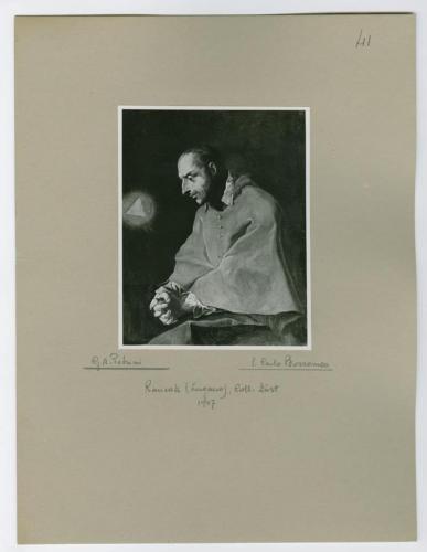 - NOTIZIE STORICO CRITICHE La fotografia, che riproduce il San Carlo Borromeo dipinto da Giuseppe Antonio Petrini (1677-1759), fa parte dell'insieme archivistico denominato "Collezione Züst" (due cartelle: C. XI e C. XII), nello specifico, è conservata all'interno della cartella C. XI. Trattasi del frutto dello studio condotto da Antonio Morassi sulla collezione di Giovanni Züst nel 1957. La fotografia è montata su cartoncino. Un particolare del dipinto e un'altra fotografia dello stesso si trovano nella cartella C. XI (invv. C.1640, C.1641).