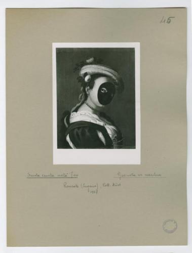 • ISCRIZIONI supporto secondario: recto: in basso - Scuola veneta metà '700. Giovinetta con maschera / Rancate (Lugano), Coll. Züst / 1957 - a matita -