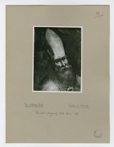- NOTIZIE STORICO CRITICHE La fotografia, che riproduce un frammento di una tela di Juan de Valdés Leal (1622-1690) raffigurante la testa di un santo vescovo, fa parte dell'insieme archivistico denominato "Collezione Züst" (due cartelle: C. XI e C. XII), nello specifico, è conservata all'interno della cartella C. XII. Trattasi del frutto dello studio condotto da Antonio Morassi sulla collezione di Giovanni Züst nel 1957. La fotografia è montata su cartoncino.