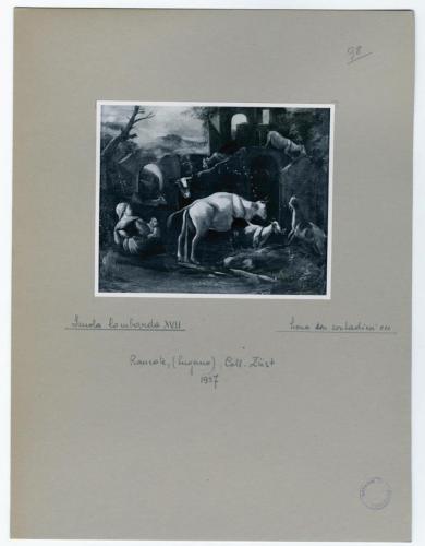 - NOTIZIE STORICO CRITICHE La fotografia, che riproduce un dipinto di Scuola lombarda del Seicento raffigurante una scena di contadini con animali, fa parte dell'insieme archivistico denominato "Collezione Züst" (due cartelle: C. XI e C. XII), nello specifico, è conservata all'interno della cartella C. XII. Trattasi del frutto dello studio condotto da Antonio Morassi sulla collezione di Giovanni Züst nel 1957. La fotografia è montata su cartoncino.