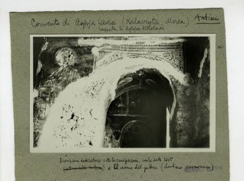 - ISCRIZIONI supporto secondario: recto: in alto - Convento di Aghja Lavra (Kalavryta, Morea)/ cappella di Aghjos Nikolaos - a matita -