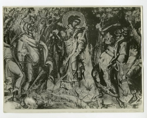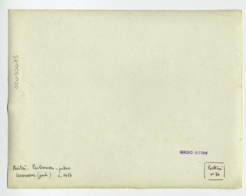 - ISCRIZIONI supporto primario: verso: in basso a sinistra - Mistrà. Pantanassa. Pitture/ Ascensione (part.) c. 1450 - a matita -