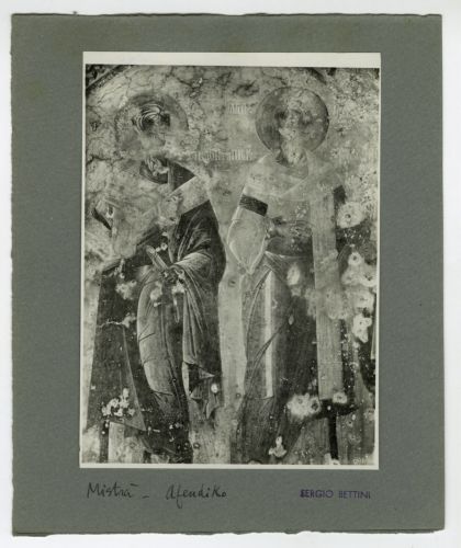 - ISCRIZIONI supporto secondario: recto: in basso a sinistra - Mistrà. Afendiko - a matita -