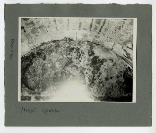 - ISCRIZIONI supporto secondario: recto: in basso a sinistra - Mistrà. Afendiko - a matita -