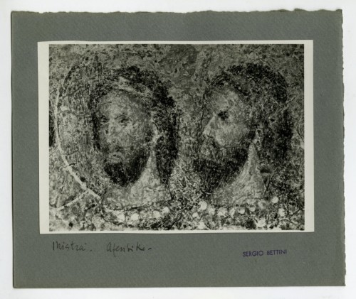 - ISCRIZIONI supporto secondario: recto: in basso a sinistra - Mistrà. Afendiko - a matita -