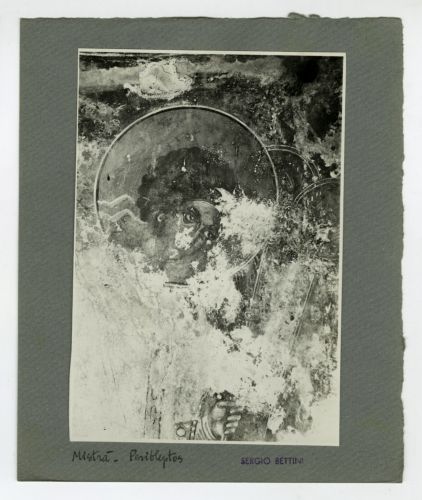 - ISCRIZIONI supporto secondario: recto: in basso a sinistra - Mistrà. Peribleptos - a matita -